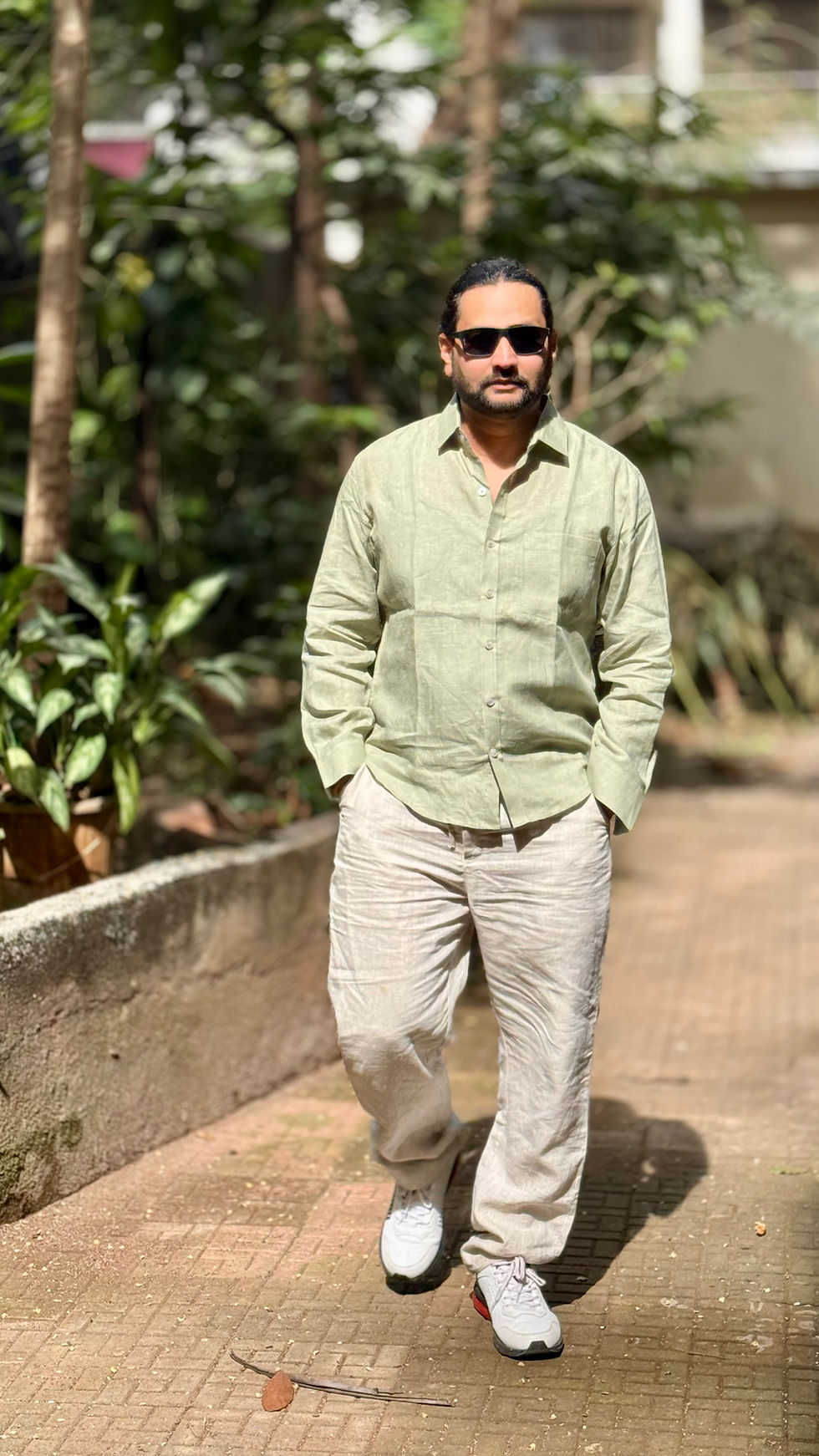 ![The Muted Matcha linen shirt made for the ones who don’t chase trends -they set them.